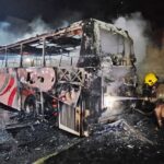 Incêndio destrói ônibus da Viação Paraibuna em garagem em Matias Barbosa.