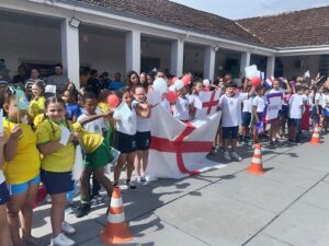 Os jogos serão realizados tanto no turno da manhã como no turno da tarde. Pela manhã cerca de 300 crianças estiveram presentes. A competição foi organizada da seguinte forma: cada sala represento um país. Os alunos estudaram tudo sobre o país o qual eles irão representar, como localização geográfica, cultura, idioma, culinária, economia, hábitos e principais modalidades esportivas.