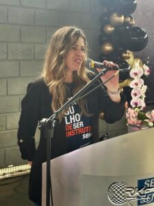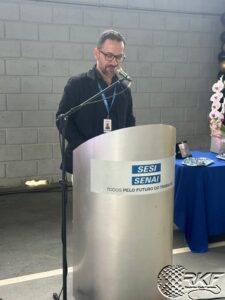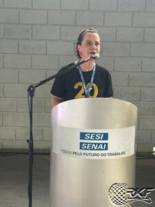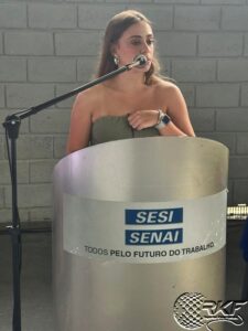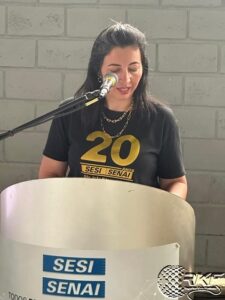 A diretora Renata com muito orgulho e emoção reforçou que através do SESI/SENAI, o nome de São João Nepomuceno é conhecido em todas as cidades do Brasil através de seus projetos, incluindo o de robótica, vencedor de prêmio internacional.