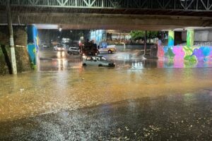 Na noite desta terça-feira 14/10, durante a forte chuva que atingiu Muriaé, o Corpo de Bombeiros foi acionado pela Polícia Militar para atender uma ocorrência de alagamento nas proximidades do viaduto, próximo à ponte da rodoviária.