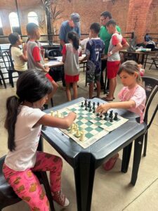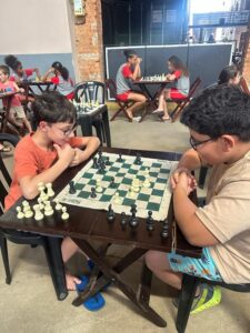 O Pátio da Fábrica se transformou em um grande tabuleiro, onde os jovens enxadristas puderam demonstrar suas habilidades estratégicas, promovendo um ambiente de aprendizado e competição saudável.