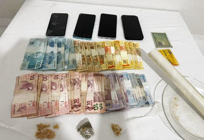 No total, foram conduzidos quatro suspeitos, e a apreendidos 31 pedras de crack, uma porção de crack, uma porção de maconha, R$ 1.035,00 e quatro celulares, que mostram que a polícia está trabalhando arduamente para manter a segurança pública