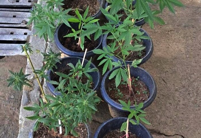 Durante a averiguação, foram encontrados 10 pés de maconha no quintal. O autor recebeu voz de prisão e teve seus direitos assegurados. Ele foi encaminhado para a delegacia, onde o caso será investigado.