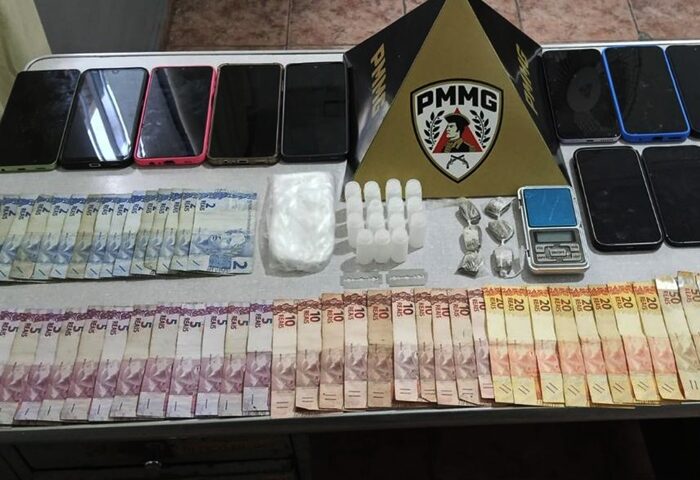 De acordo com a Polícia Militar foram encontradas seis buchas de maconha, R$861 e dois aparelhos de celular. Na residência do segundo suspeito, de 28 anos, ainda de acordo com a PM, foram encontrados materiais relacionados ao tráfico entre eles um caderno com anotações uma balança de precisão e nove aparelhos celulares.