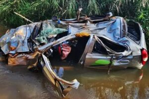 Carro cai de ponte na ” Curva do Dólar” em Maripá e condutor fica gravemente ferido.