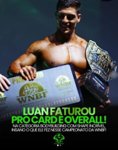 Com um físico impressionante e performance impecável, Luan Correa competiu pela equipe Team Ícaro e garantiu o Pro Card e o Overall na categoria Bodybuilding. Com o “Pro Card” Luan torna-se torna-se um profissional do esporte, com a permissão de competir em eventos profissionais e de ter acesso a prêmios em dinheiro, patrocínios e mais visibilidade