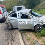 Carro capota na MG-133 entre Tabuleiro e Piau e ocupantes ficam feridos