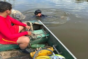 Após avaliação da situação e definição do plano de ação, foram iniciadas buscas subaquáticas equipadas, culminando na localização do corpo da vítima próximo ao ponto indicado pelas testemunhas.