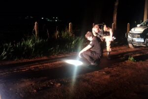 O corpo da vítima foi localizado, caído ao lado de uma bicicleta, com perfuração na cabeça. Uma equipe do Samu foi ao local, e o médico constatou o óbito.