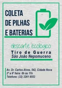As coletas de lixo eletrônico, pilhas e baterias são entregues no quartel do Tiro de Guerra: Confira abaixo: