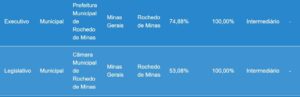 O Poder Executivo de Rochedo de Minas foi avaliado e, como resultado do Programa Nacional de Transparência Pública 2025, obteve uma das melhores notas de toda a nossa região, alcançando 74,88% de efetividade no índice de transparência e 100% de cumprimento dos requisitos essenciais.