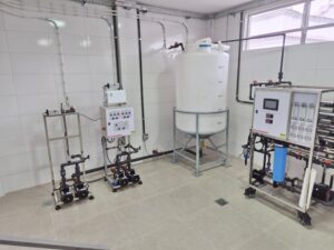 Ao longo de 2025, o projeto avançou para sua fase final com a instalação das cadeiras de hemodiálise, filtros, divisões físicas dos ambientes, além da completa execução das partes elétrica e hidráulica. O setor conta com reservatório de água específico, caixas d’água e purificadores próprios, além de um moderno sistema de osmose reversa, fundamental para garantir a qualidade da água utilizada nos procedimentos de hemodiálise.