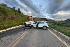 Colisão entre dois automóveis deixa feridos na BR-116 em Muriaé.