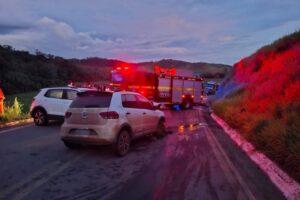 Colisão entre dois automóveis deixa feridos na BR-116 em Muriaé.