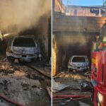 Carro é destruído pelo fogo em garagem de Juiz de Fora.