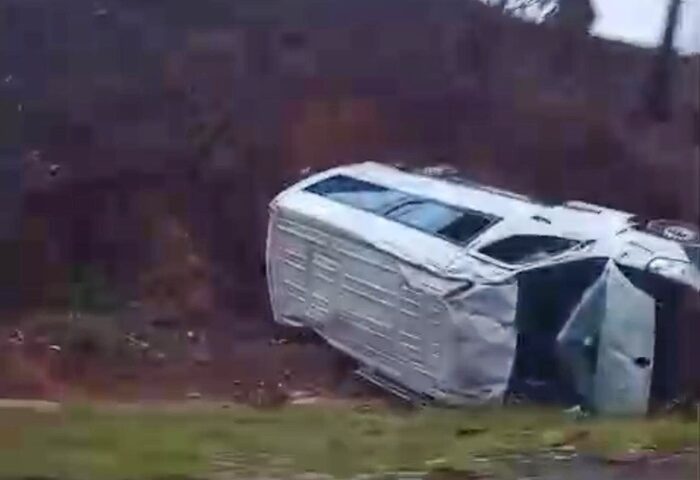 Van da Secretaria de Saúde de Bicas capota na BR-267 quando retornava de JF