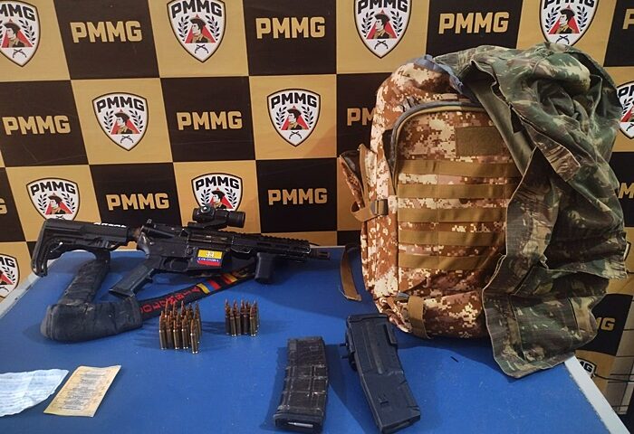 Durante as buscas no meio do mato com o auxílio de cão farejador, foi localizada e apreendida um fuzil carregado com adesivo da Colômbia, carregado, possivelmente utilizado na ação criminosa. O veículo abandonado pelos autores também foi apreendido e removido para o pátio credenciado.