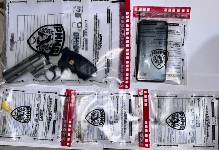 Um homem que estava próximo ao carro quando notou a aproximação da viatura, tentou fugir em direção a pasto jogando fora alguns materiais, mas foi contido pelos policiais em seguida. Os militares realizaram uma varredura localizando um simulacro de armas de fogo calibre 38 e 16 pedras de crack, um tablete de cocaína, uma porção de maconha.