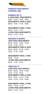 HORÁRIOS (CARNAVAL) PARA DESCOBERTO: