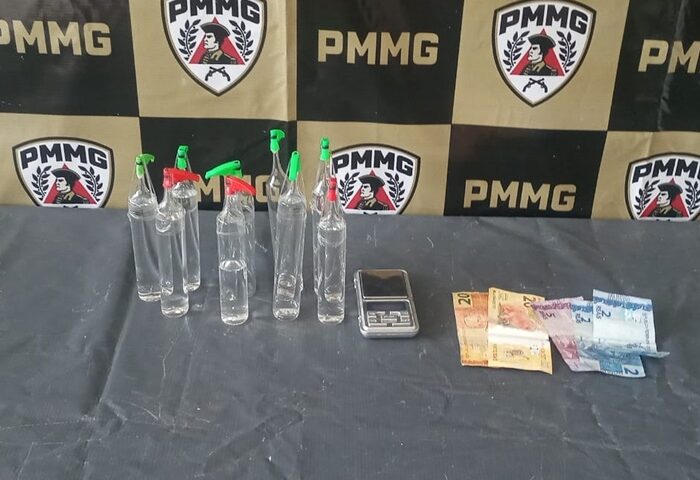 Foi necessário que a equipe entrasse no imóvel para prendê-lo, sendo visualizado em um móvel, no cômodo que o autor se encontrava, 9 frascos de lança perfume, uma balança de precisão e R$49,00.