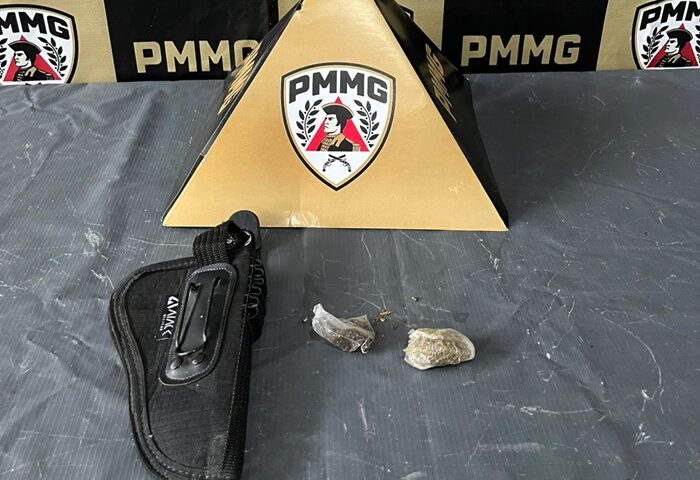 Ainda de acordo com a PM, o alvo do mandado foi localizado em seu quarto e próximo de sua cama, foi apreendido um coldre de arma de fogo e duas buchas de maconha.