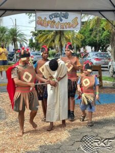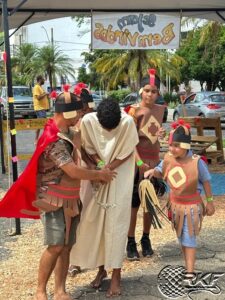 Uma verdadeira multidão se concentrou e se emocionou na Praça da Estação, para assistir a encenação da Paixão e da Ressurreição de Cristo. Além do teatro, houve também dança, rua de lazer, chocolates, pipoca e algodão doce para as crianças grátis, louvor e a palavra do pastor André.
