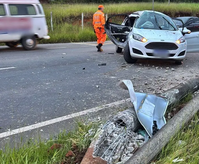 Homem é ejetado e morre após carro bater em poste na madrugada em Juiz de Fora